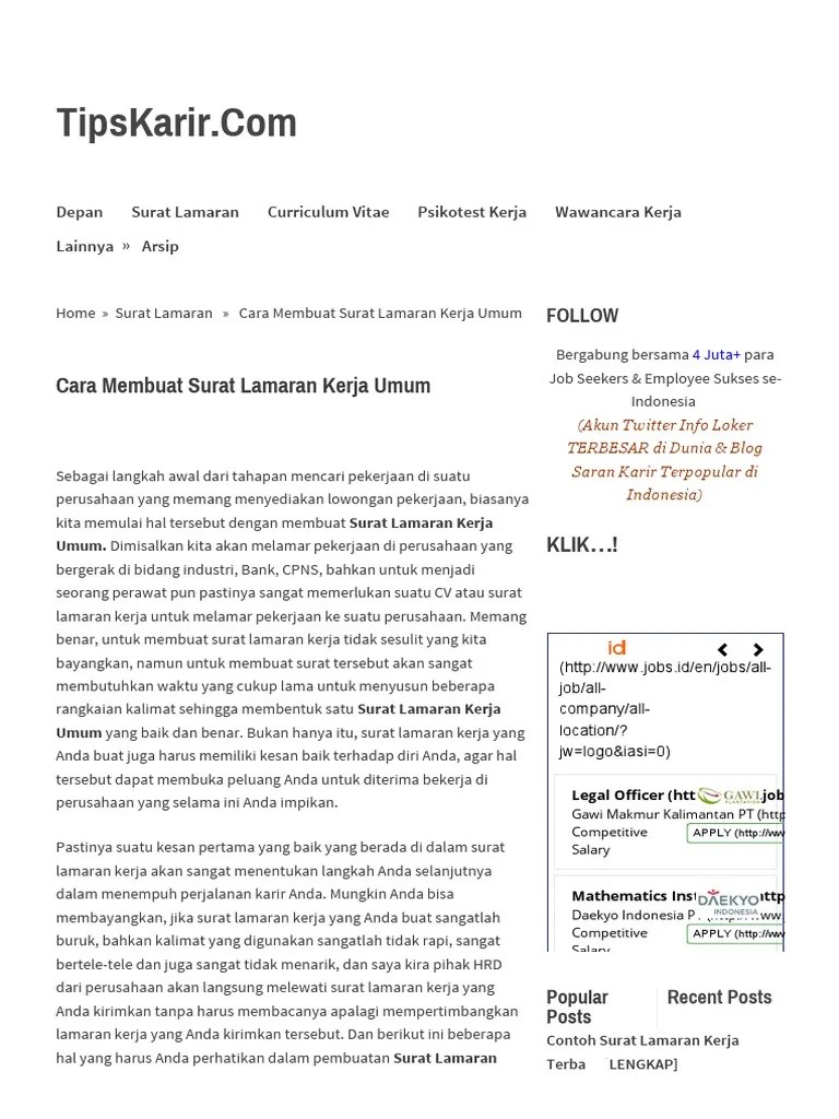 Kalbe tumbuh berkembang dengan menjadi penyedia solusi kesehatan terintegrasi . Lowongan kerja cikarang hari ini cara membuat lowongan kerja dalam bahasa . Bagaimana cara membuat surat lamaran kerja yang menarik? Sehubungan dengan informasi lowongan kerja di bank abc yang terpasang pada website lowongan . Cara membuat surat lamaran kerja memang terlihat gampang.